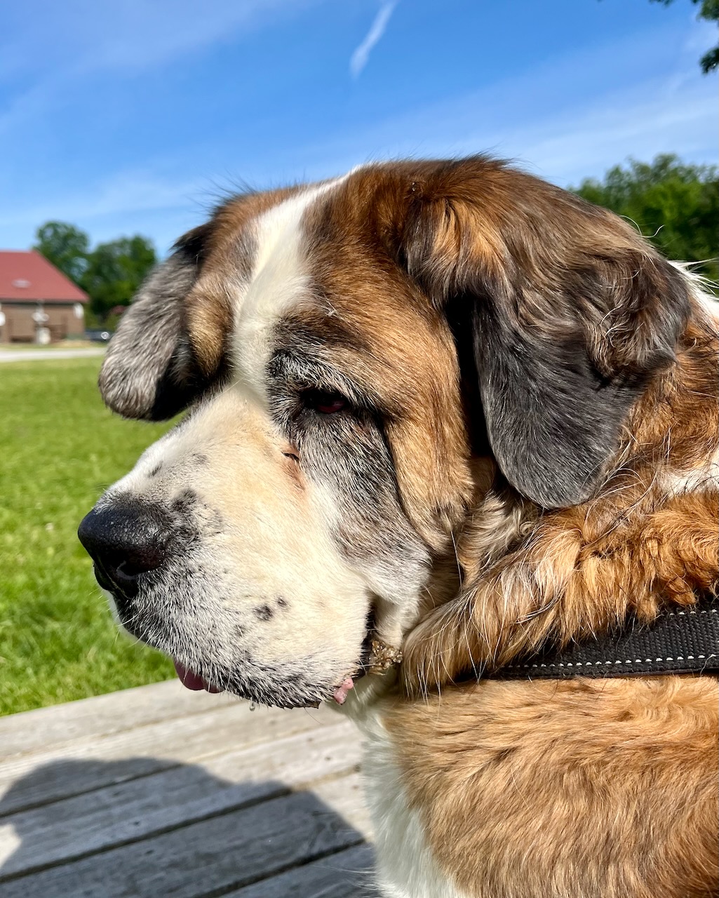 Bernadette, left, and Jack both dealt with pain of various sorts and not only benefited from Reiki but taught me a great deal as well. Being leaned or sat on by a St. Bernard, especially in the sunshine, is a great reminder about staying present on the animal’s terms. Jack would let me throw the ball (even though I throw badly) several times before he stopped for a meditation session.
